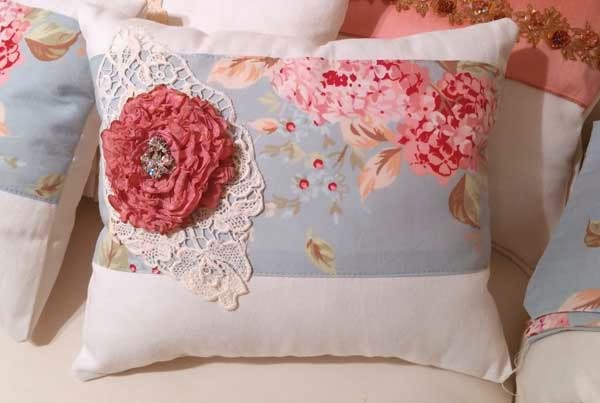Evening! We just wanted to show you our newest additions to our website tonight. These are all hand made from white denim left over from my slipcovers. Embellished with our pretty soft roses, huge rhinestone pieces and vintage lace, they are a great addition to your shabby decor.
